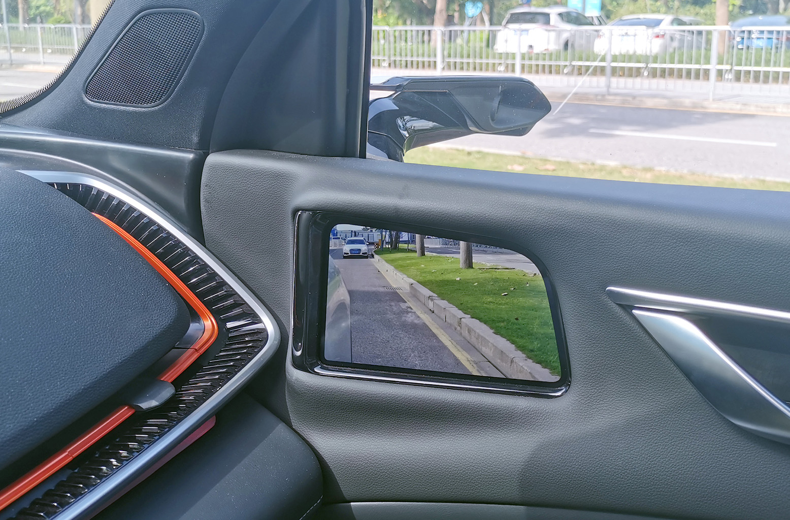 車規(guī)級OLED柔性屏貼合A柱設(shè)計,通過算法實現(xiàn)A柱“透明化、可視化”,不影響造型美觀與A柱強度情況下,完美解決A柱盲區(qū)問題。
